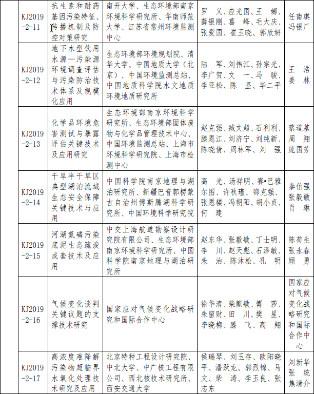 附:2019年度环境保护科学技术奖拟授奖项目名单
