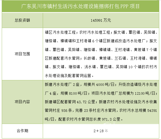 广东吴川市镇村生活污水处理设施捆绑打包PPP项目